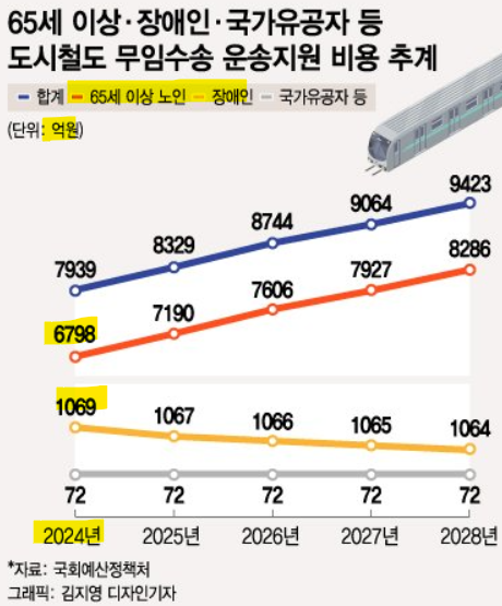 지하철 무임승차 연령, 나이 만 70세로 변경 (교통비 적자)