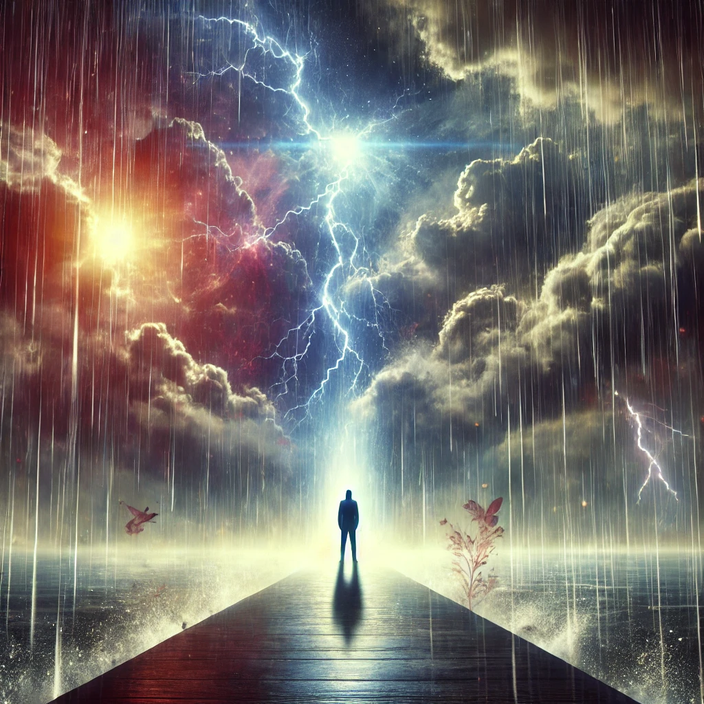 천둥번개와 함께 비가 내리는 꿈은 예상치 못한 큰 변화나 충격적인 사건이 다가올 가능성을 암시합니다. 이는 현실에서 강한 감정적 동요가 있을 수 있으며, 주변 환경이 급격히 변할 수 있음을 경고하는 신호일 수도 있습니다.