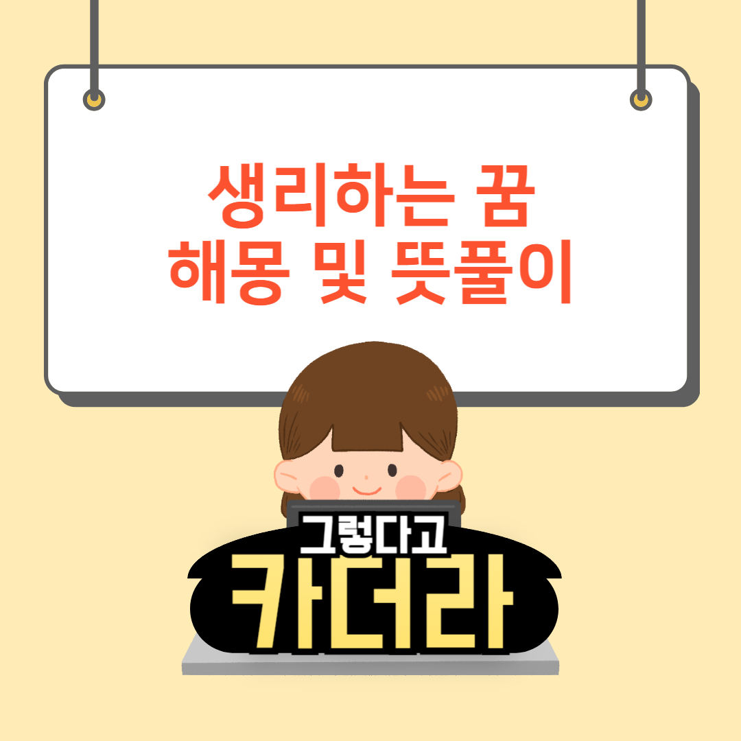 그래서 오늘은 제가 꿈에서 나온 생리의 의미와 대표적인 해몽 10가지를 준비했습니다. 여러분이 꾸신 꿈과 함께 비교해 보세요. 혹시나 오늘은 다른 꿈을 꾸셨다면 아래에서 확인하실 수 있습니다.
